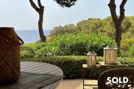 In the most popular residential area of Vallgornera is this very well maintained ground floor flat with 2 bedrooms and 2 bathrooms, one of them en suite. The living and dining room with open kitchen invites you to linger. The large covered terrace with a small garden, partial sea view and view into the greenery, which leaves nothing to be desired. Due to the side facing away from the pool, you benefit from the quiet location. The installed electric radiators in combination with the double glazing and the air conditioning give you a pleasant living climate in summer as well as in winter. This flat is completed by a utility room with washing machine. Fibre optic connection and satellite TV are part of the equipment as well as parts of the high-quality furniture. In addition to a private underground parking space, the property also includes shares in the communal complex, which includes an upscale restaurant with a resident's discount. The well-maintained complex also offers an indoor and outdoor pool, a sauna, a fitness area, lifts and a caretaker service.